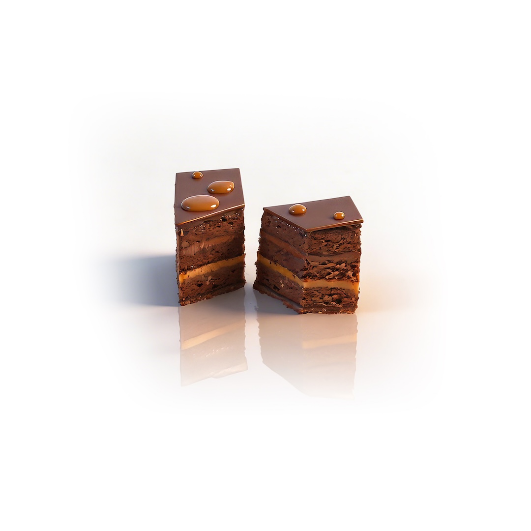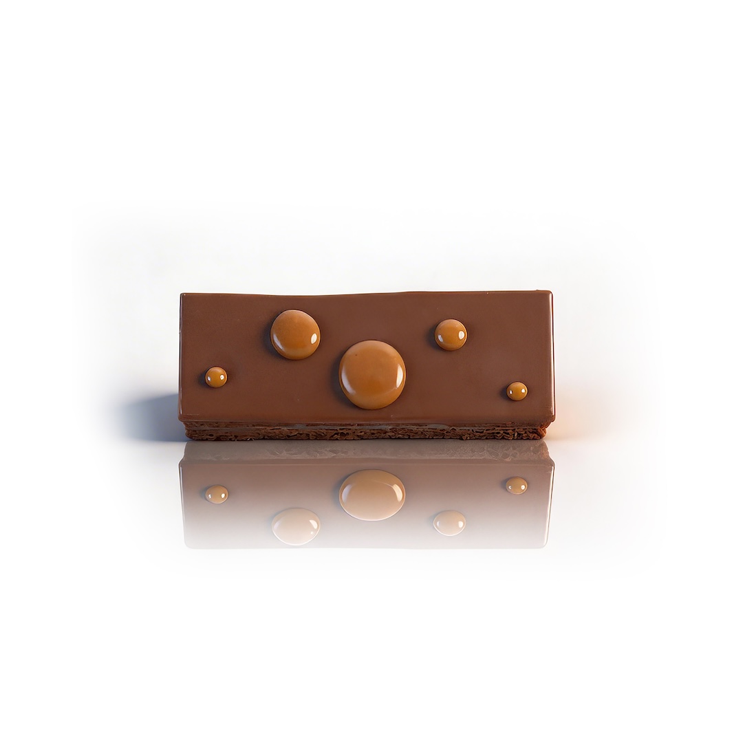 Le Délice est une création intensément gourmande qui associe un biscuit Vegas au chocolat, un crémeux caramel et un crémeux aux deux chocolats. Son dessus chocolat et ses pointes de caramel renforcent encore la richesse de cette pâtisserie individuelle généreuse et fondante. Un dessert de caractère, parfait pour les amateurs de chocolat et de caramel.